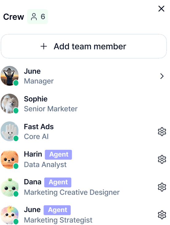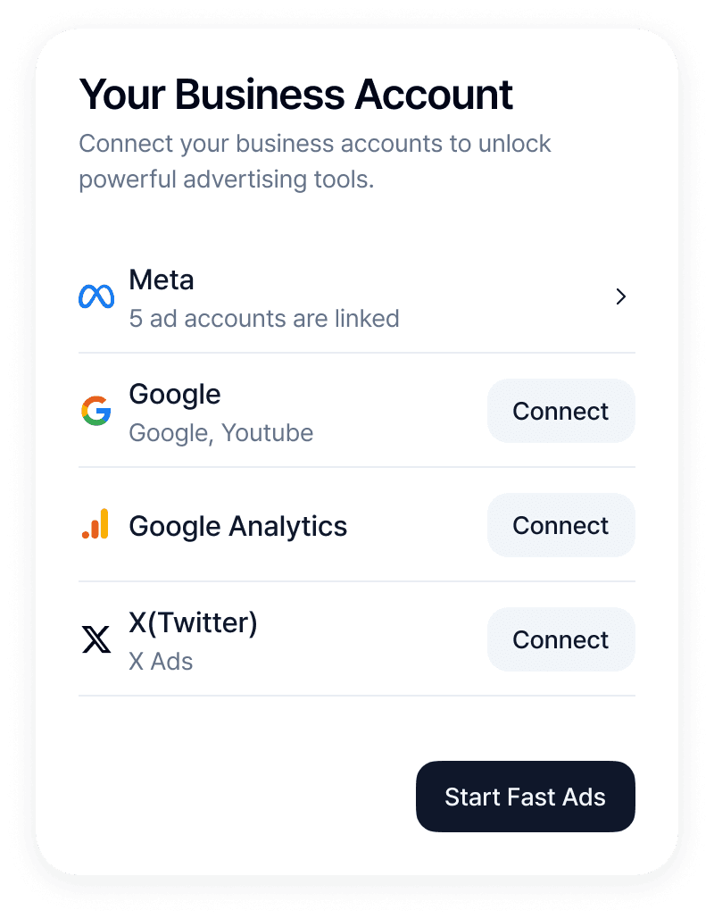 Traditional tools require you to check dashboards, analyze data, and manually execute campaigns. Fast Ads replaces that workflow with a team of AI agents that analyze performance, generate creatives, and optimize campaigns automatically.