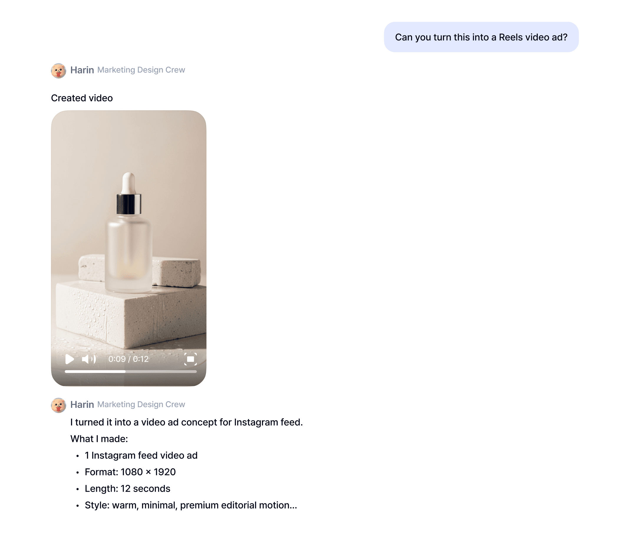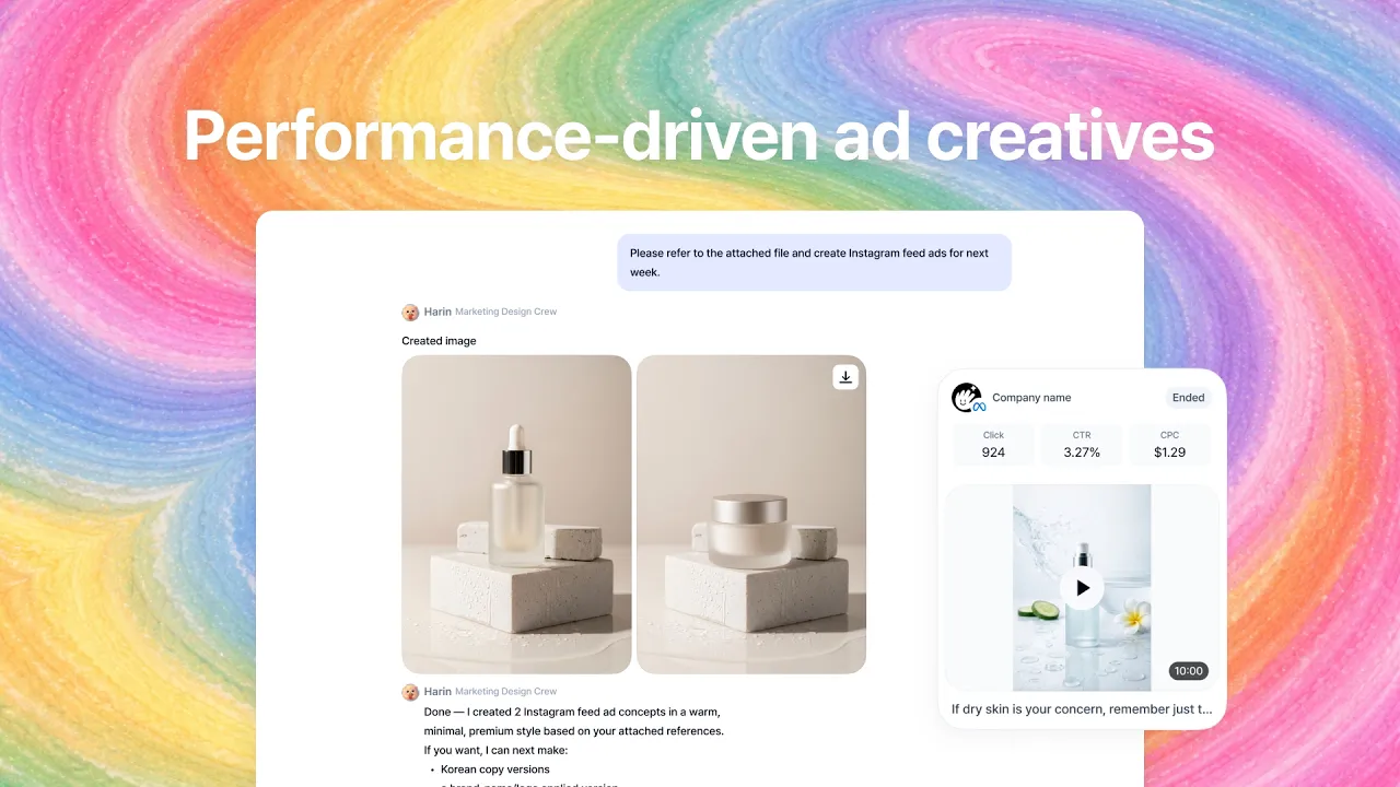 Think of Harin less as a design tool and more as a dedicated creative partner: one who has read every performance report, understands what your audience responds to, and is available to produce on demand.